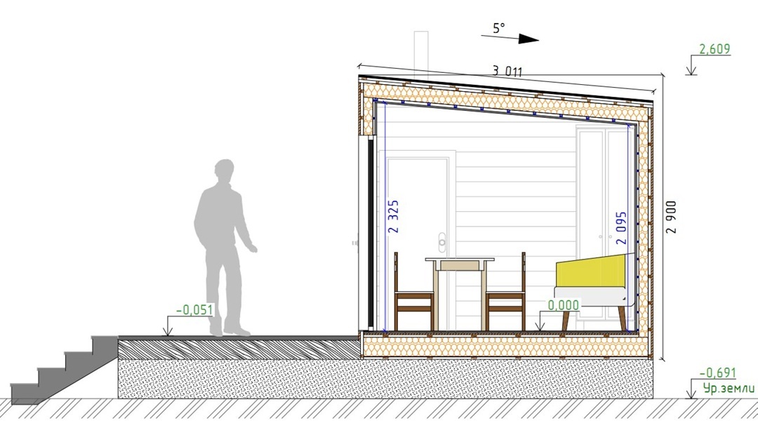 Утепление: Стены 100мм, пол и потолок 150мм.