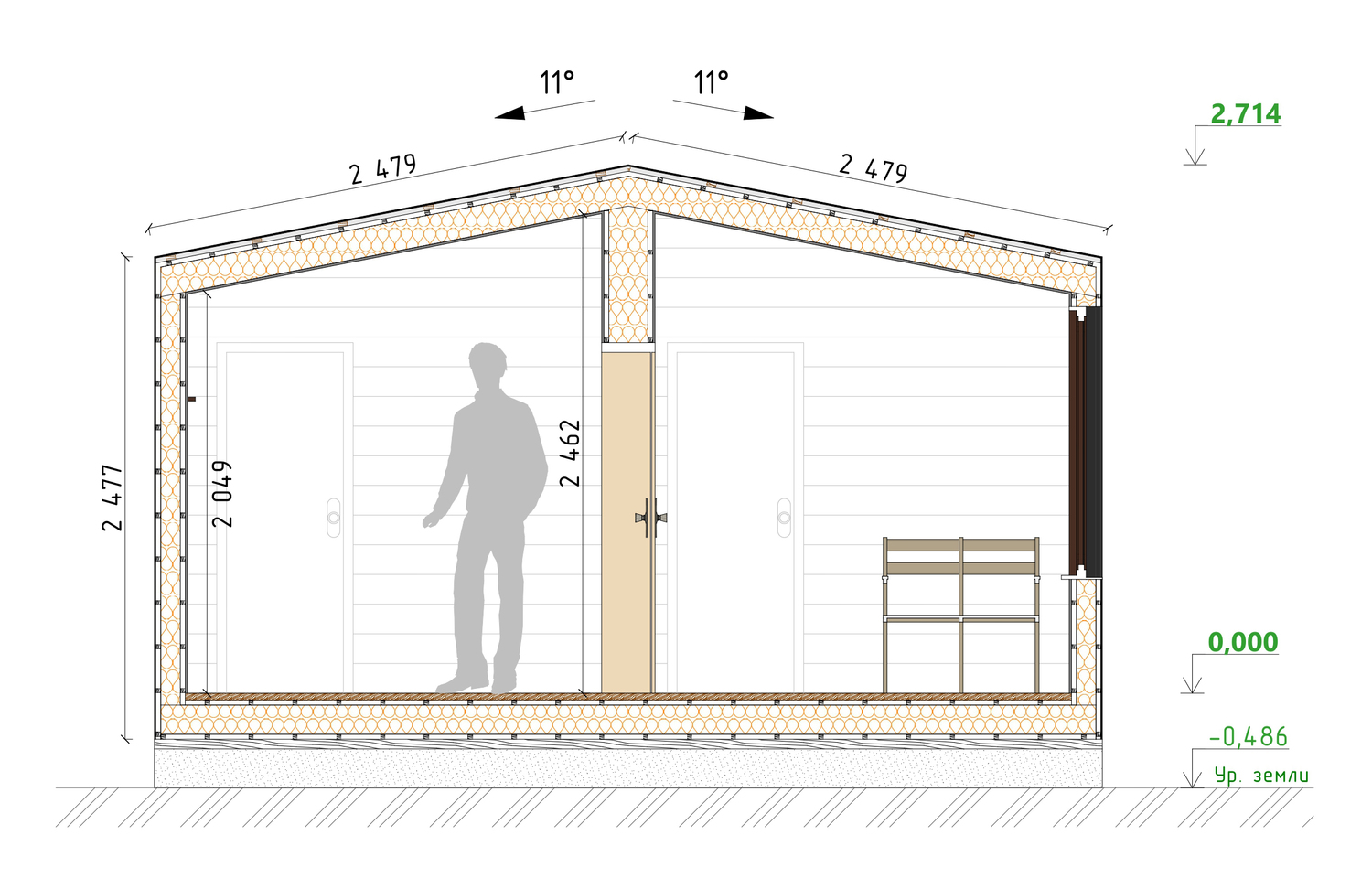 Утепление: Стены 100мм, пол и кровля 150мм.