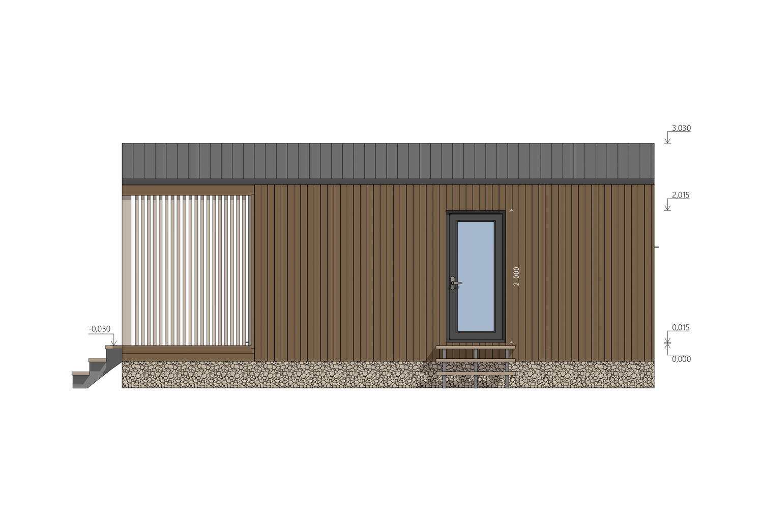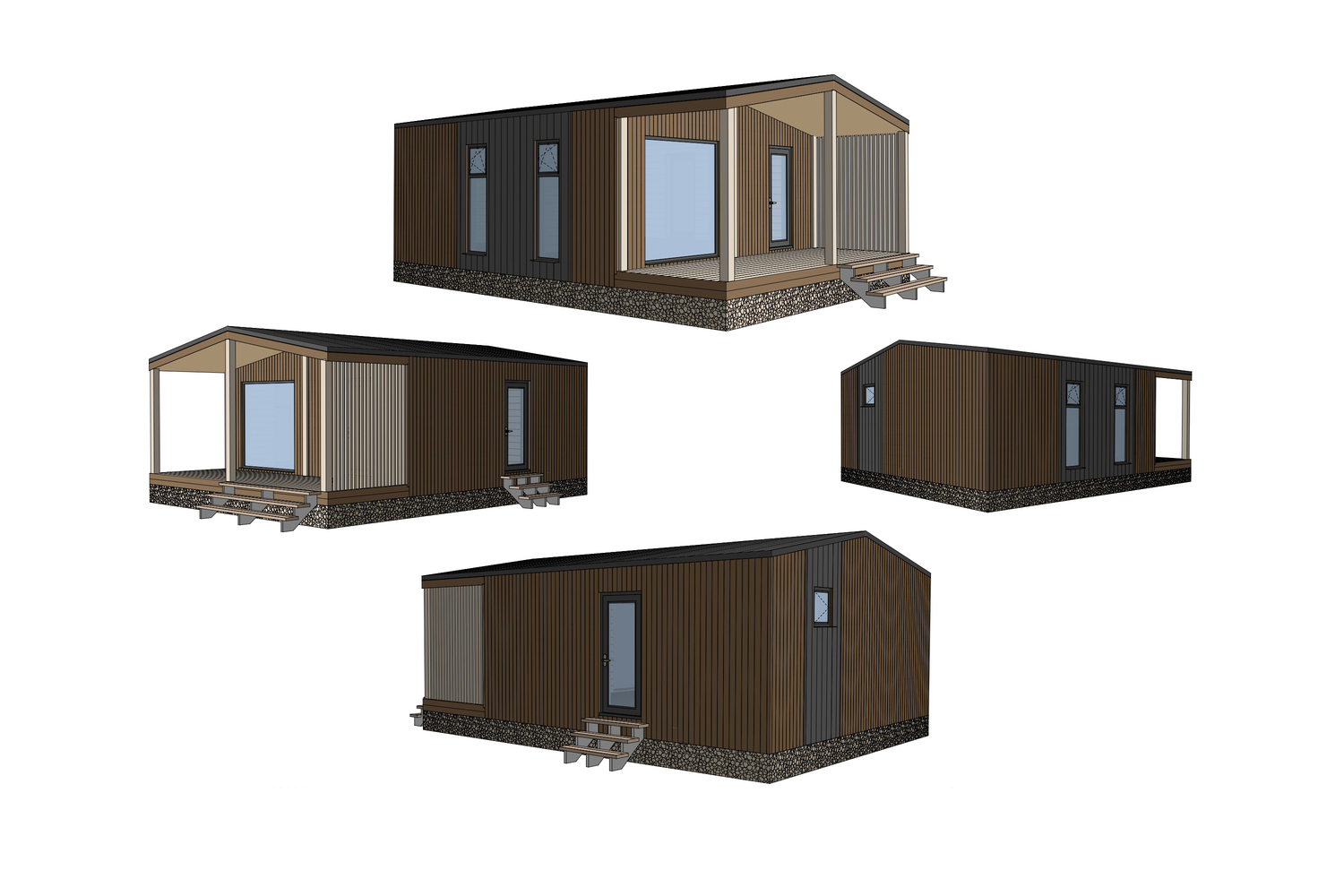 Модульный дом с одной спальней площадью 41м2 с крытой террасой.