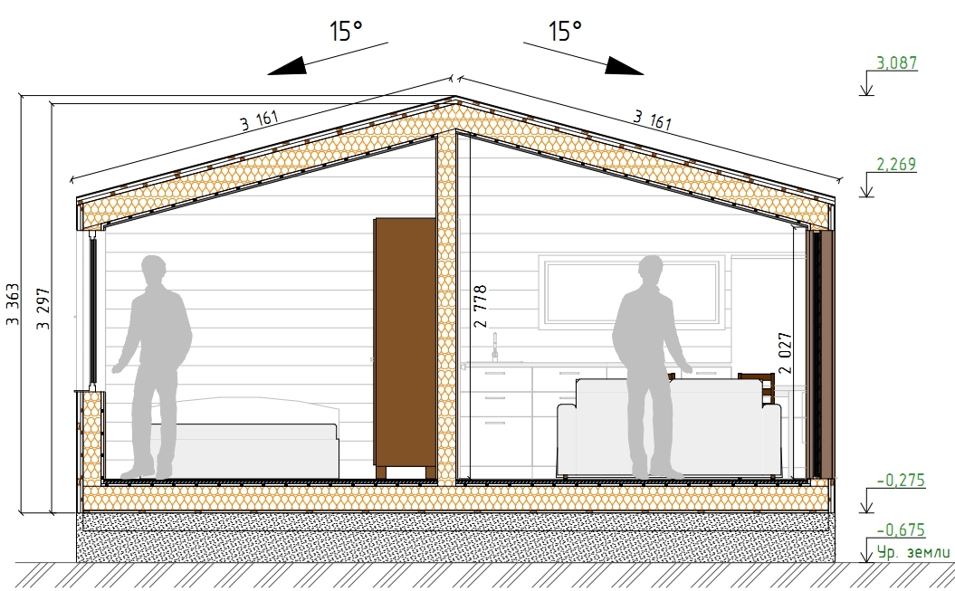 Утепление: Стены 150мм, пол и потолок 200мм.