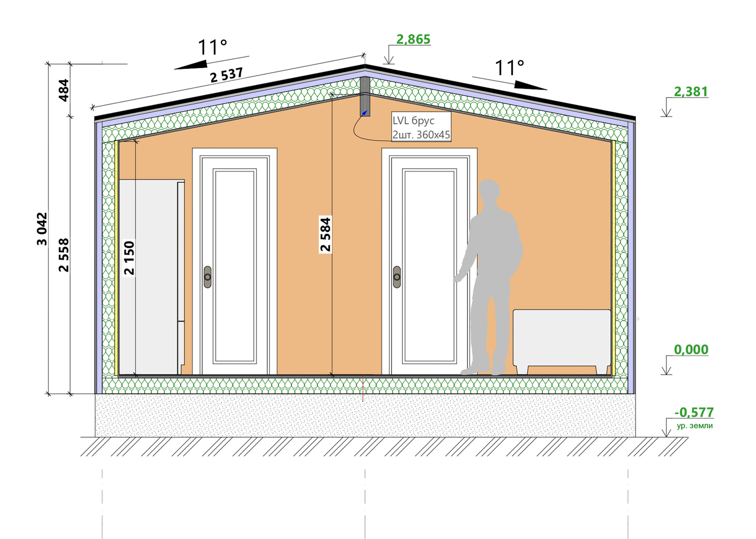 Утепление: Стены 150мм, пол и потолок 150мм.