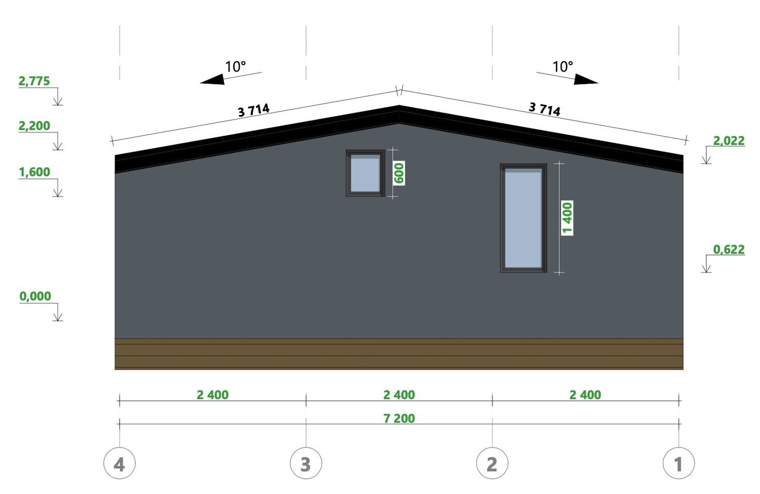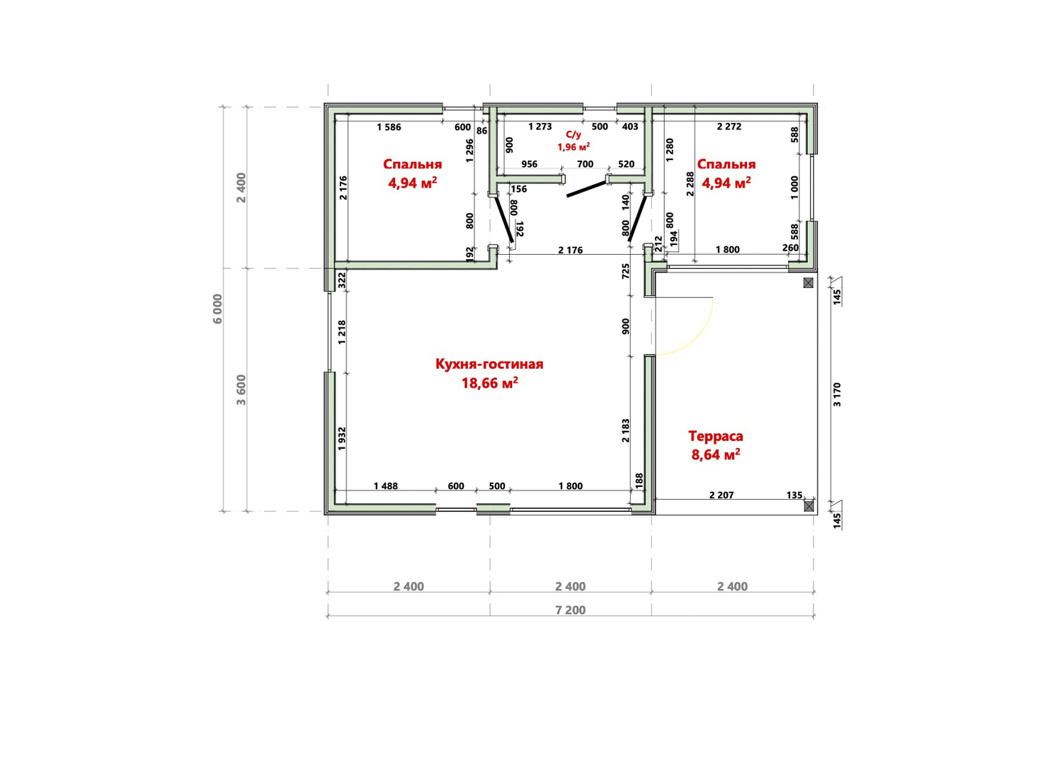 Самый бюджетный вариант жилого дома с двумя спальнями в нашем каталоге. Да, спальни небольшие, но это отличный вариант когда хочется чтобы у каждого члена семьи был свой собственный изолированный уголок, но при этом бюджет на строительство ограничено. Так же этот дом отличный вариант для глэмпинга. В данном проекте кухня-гостиная, две отдельные спальни, а так же совмещённый санузел.