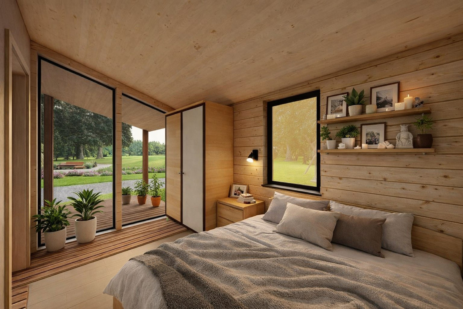 Базовая комплектация под ключ "заходи и живи" и включает в себя полностью готовый к проживанию дом с утеплением, внутренней и внешней отделкой, панорамным остеклением и межкомнатными дверьми, а так же разводку труб канализации и водоснабжения, сантехнику (унитаз, раковину, душевую систему с поддоном и душевой перегородкой, а так же электрический накопительный водонагреватель 50л.), базовый пакет электрики (розетки, выключатели, светильники) и систему вентиляции.