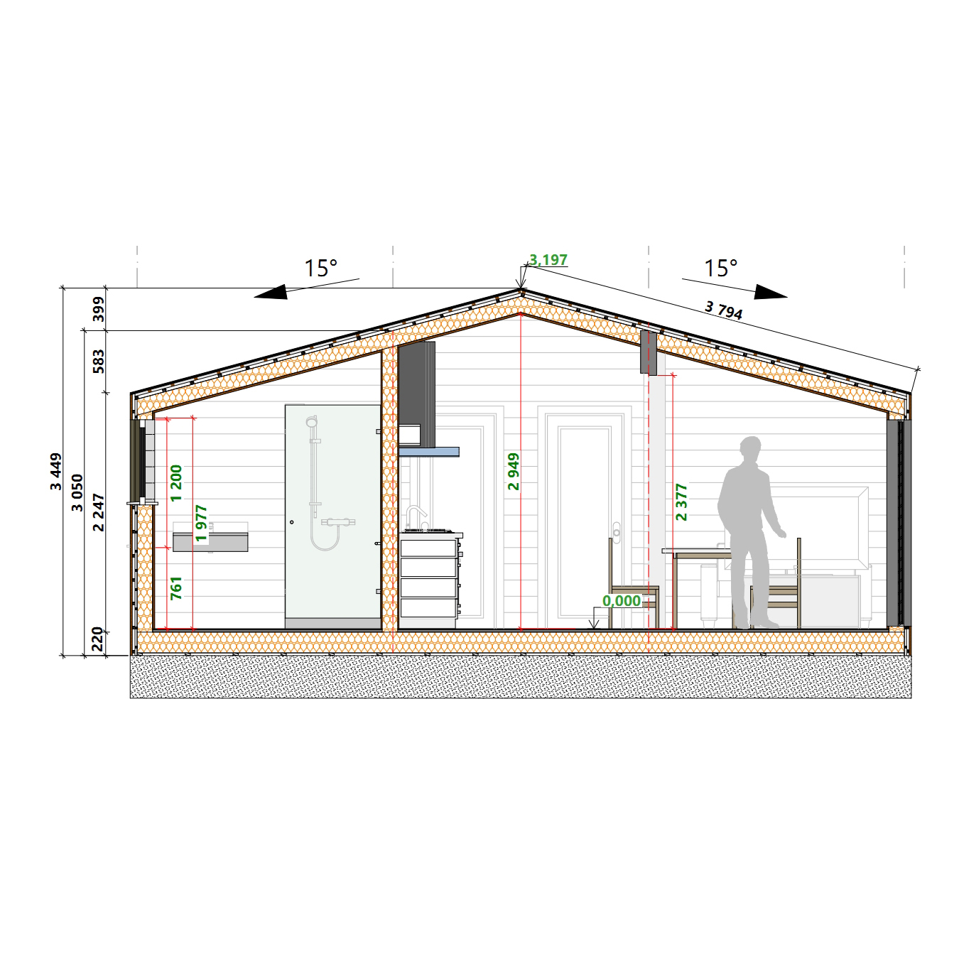 Утепление: Стены 150мм, пол 200мм и потолок 150мм.