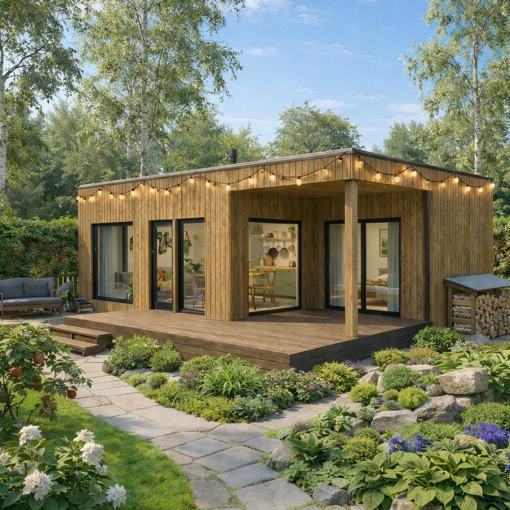 Дом с одной спальней и террасой общей площадью 60м2.