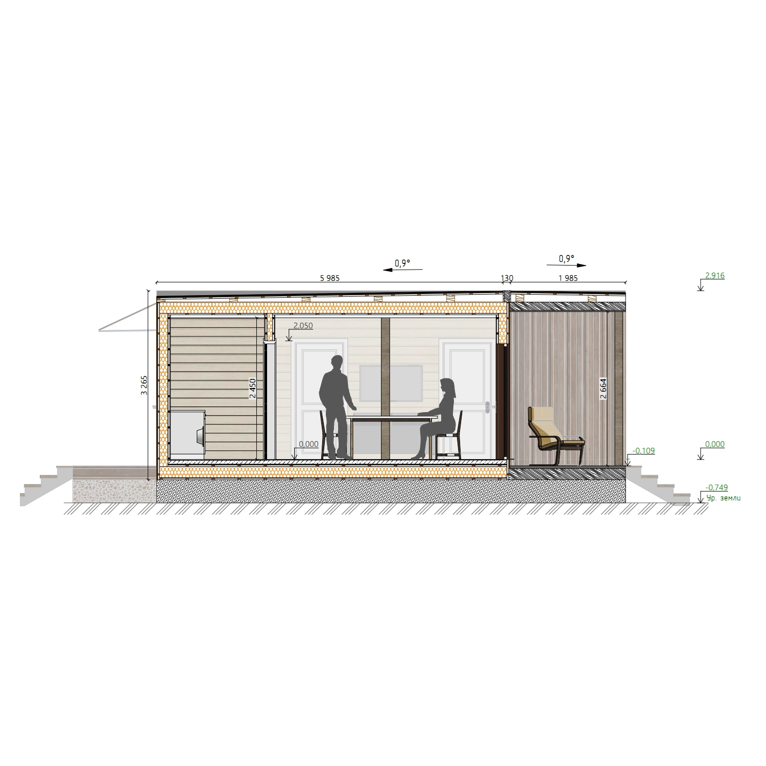 Просторный дом с двумя вместительными спальнями и большой кухней-гостиной для комфортного круглогодичного проживания. Дополнительное преимущество дома - отдельный вход с изолированной прихожей. Так же есть второй выход на уютную крытую террасу из кухни-гостиной на которую так же выходят большие панорамные окна.